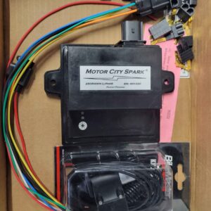 This is a new in the box Motor City Spark cdi box. It is the black one you run off a battery. It is in the original box with instruction sheet showing all the optional timing curves. Also includes the correct kill switch and some battery connectors !!